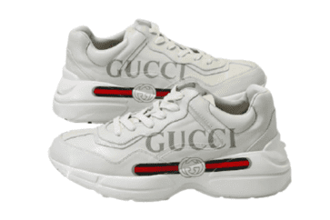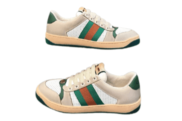 - Ace Sneakers: הסניקרס האייקוניות של גוצ'י, המוכרות בזכות הפסים הירוק-אדום והלוגו הכפול G. לעיתים מעוטרות בעיצובים ייחודיים כמו דבורים, נחשים וכוכבים.