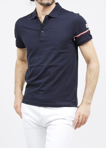 MONCLER POLO SHORT MEN LOGO SIDE BLACK AND BLUE
